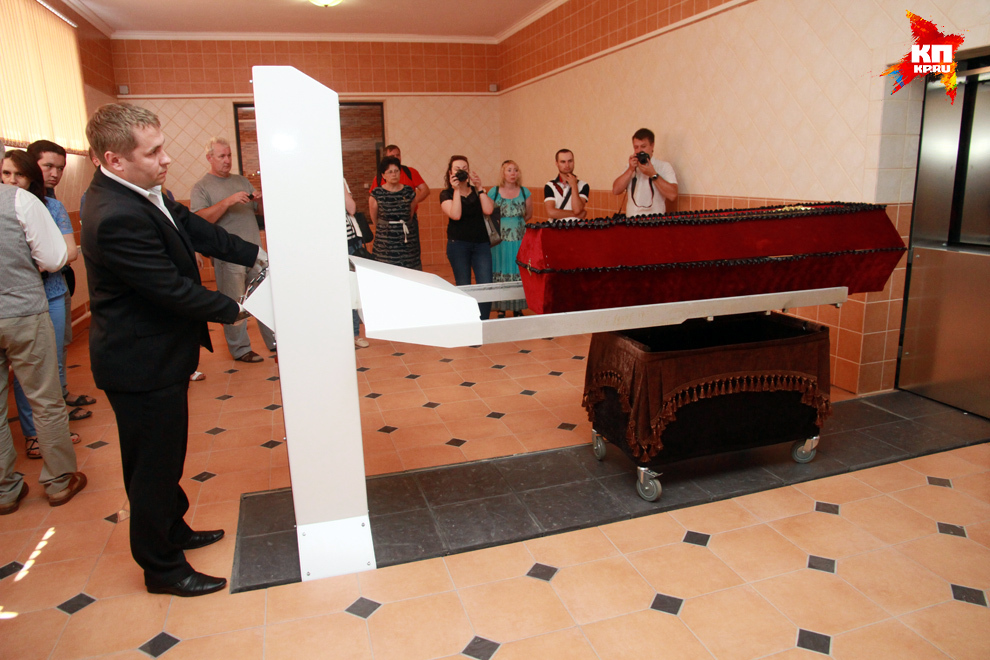Гроб с телом доставляется в крематорий и ставится на катафалк в зале для церемонии прощания. По окончании ритуала гроб перекладывается на транспортёр и перемещается в транзитное помещение, откуда через определенное время он поступает в кремационную печь. Представляя, как кремируют людей в крематории, мы, особенно в юном возрасте, думаем, что тело отправляется в огонь немедленно после того, как гроб исчезает за шторами зала прощания. Но это не всегда так: такая технология предусмотрена далеко не в каждом крематории.