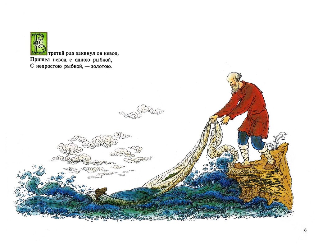 Пришёл невод с одною тиной. Он в другой раз закинул невод, —