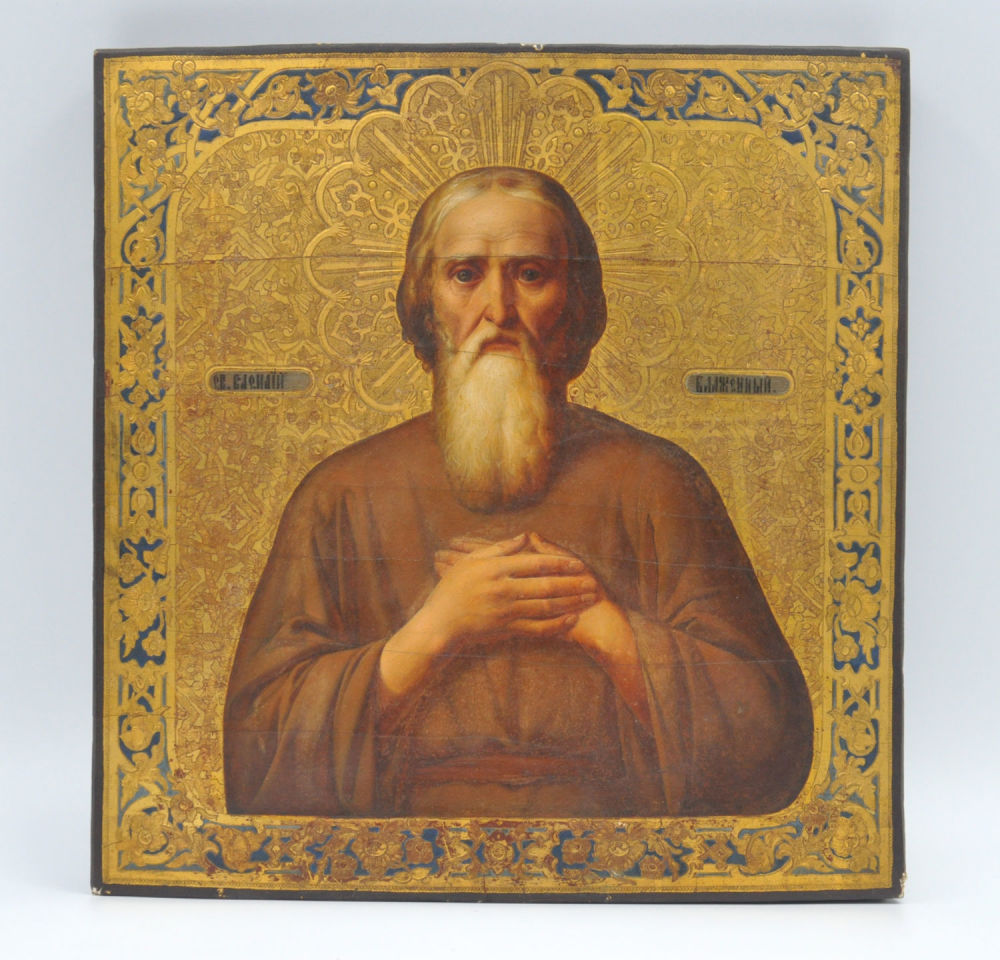 О, блаже́нная душе́, о прему́дрости испо́лненный ра́зуме: возсия́ бо на́м светонезаходи́мое со́лнце весе́лия, просвеща́я Росси́йское Ца́рство: от бесо́в уя́звленных исцели́тель, па́че же и сами́х бесо́в прогони́тель, слепы́м прозре́ние, хромы́м хожде́ние, сля́ченным исправле́ние, боля́щим все́м исцеле́ние и здра́вие: от бе́д и скорбе́й избавле́ние, печа́льным утеше́ние.