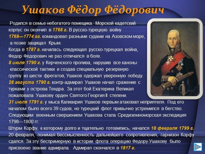 Ушаков адмирал биография краткая: Федор Ушаков — краткая биография