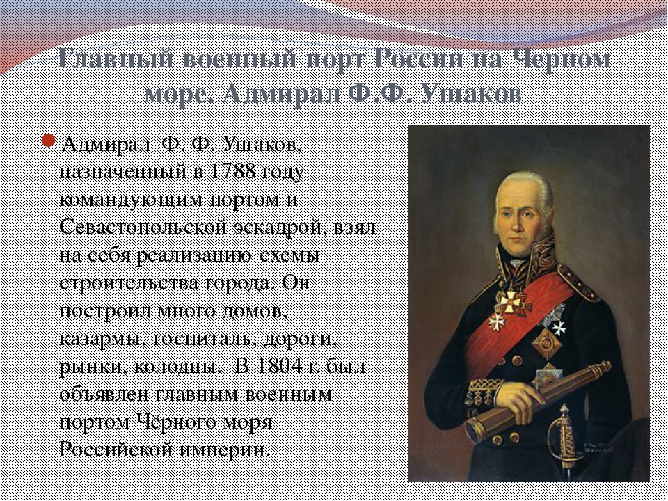 С 1783 г. Ушаков строил Черноморский флот и его главную базу в Севастополе, формировал и обучал корабельные команды.