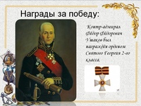 Позже был учрежден орден в честь адмирала Нахимова. Им награждаются выдающиеся офицеры за отличное ведение морских операций, смелые решения, хорошую организацию.Орден имеет несколько степеней.