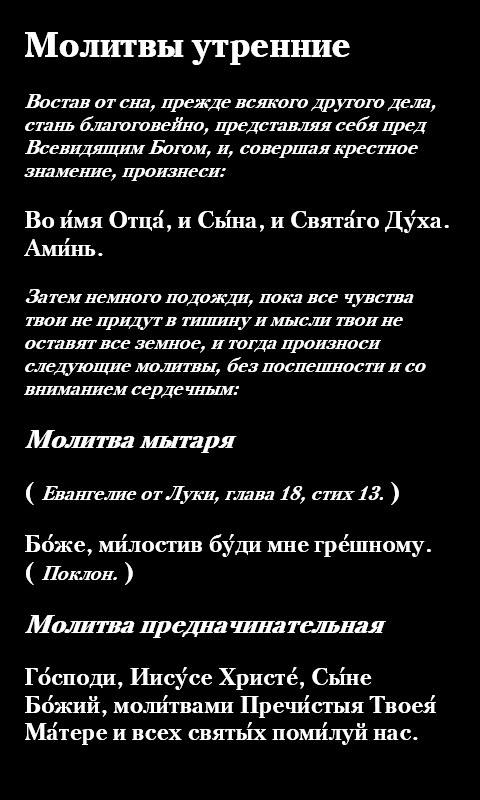 Утреннее молитвенное правило на русском языке. Как правильно читать утренние и вечерние молитвы