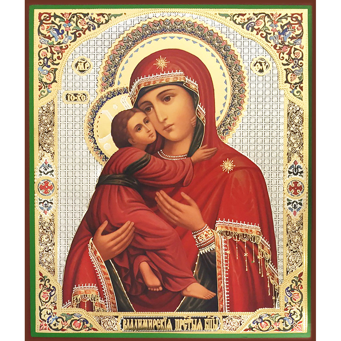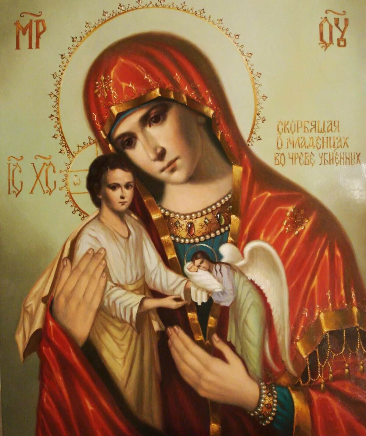 — MP ΘV: Эти буквы обобщают слова ΜΗΤΗP ΘΕΟΥ (Митир Теоу), что означает Богородица.