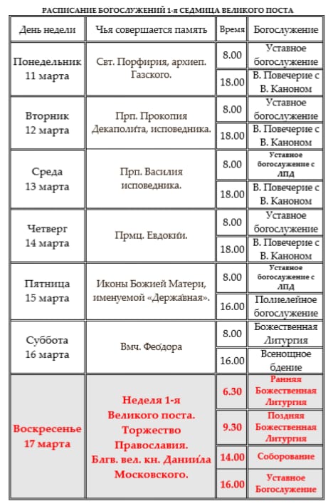 Расписание служб в Храме Покрова Пресвятой Богородицы: