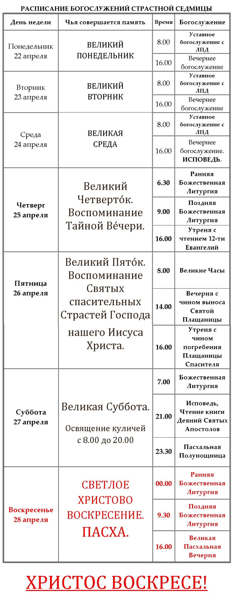 Расписание Богослужений — Храм Святых Царственных Страстотерпцев в Ясеневе