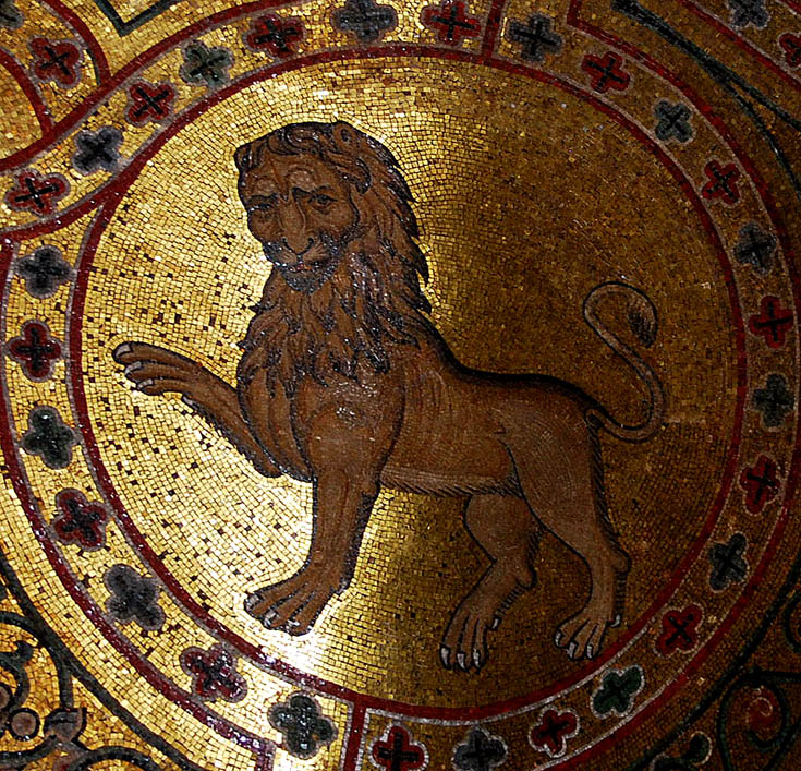 - Лев связан со Святым Марком, потому что в его Евангелии подчеркивается величие Христа и Его царственное достоинство, точно так же, как лев традиционно считался царем зверей. Евангелие от Марка начинается с пророческого голоса Иоанна Крестителя, вопиющего в пустыне подобно львиному рыку.